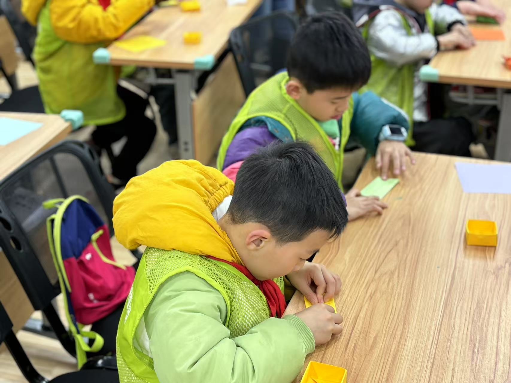 这次的趣味折纸课分为两部分,先带孩子们做手指操,然后循序渐进加难度,直到孩子们可以跟着视频教程和老师讲解折出满意的作品,这次孩子们的完成度很不错。